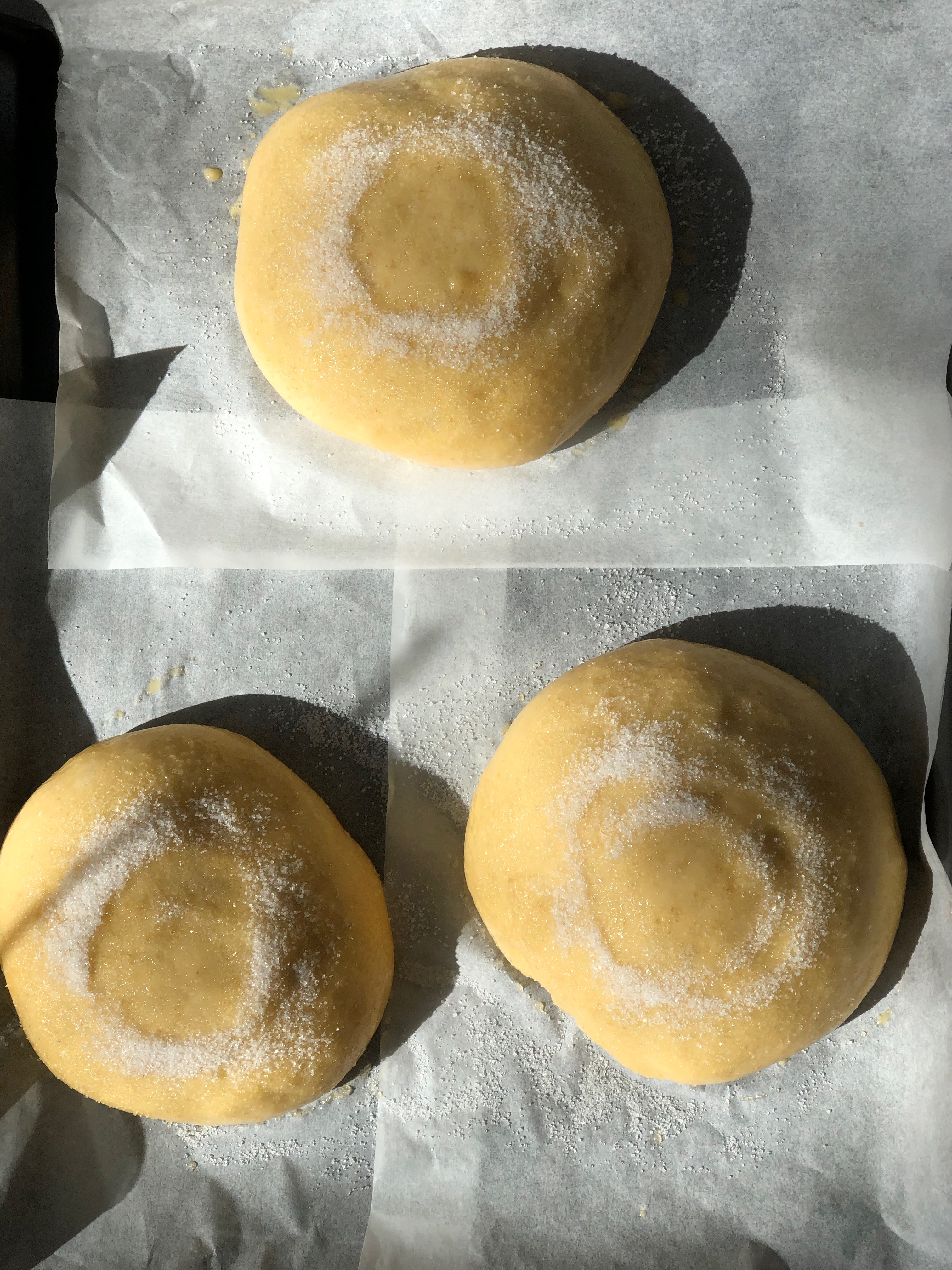 8. Dejar reposar si es posible tapadas por papel de horno o plástico para que no se resequen hasta que doblen su volumen, aquí el tiempo puede variar según la temperatura del lugar, puede ser 45 min, 1 hora o más