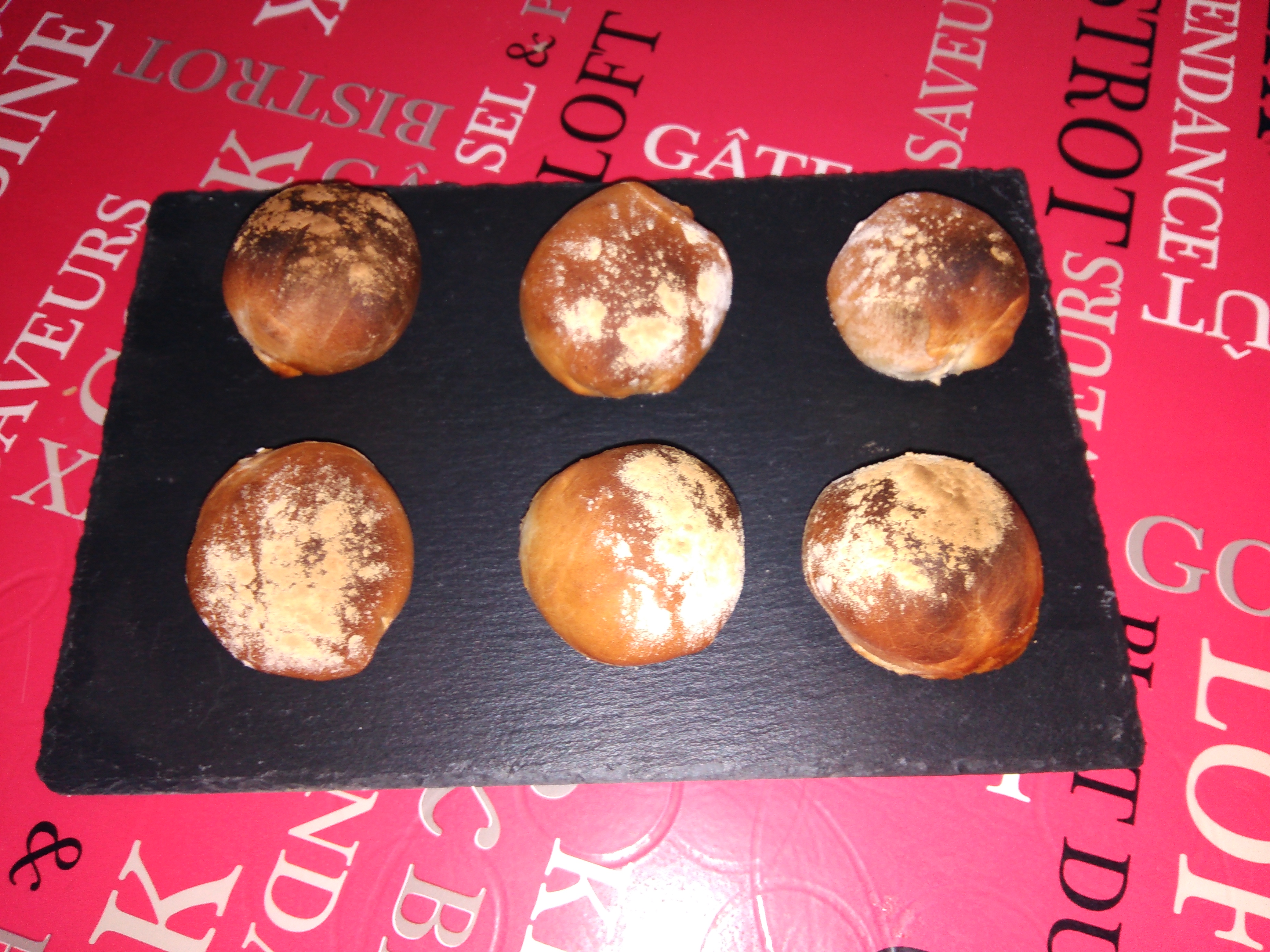 DIVIDA LA MASA EN 20 PORCIONES DE 40-45G. COLOQUE UN TROZO DE CHORIZO EN EL CENTRO DE CADA PORCIÓN DE MASA Y CIERRE FORMANDO UNA BOLITA.